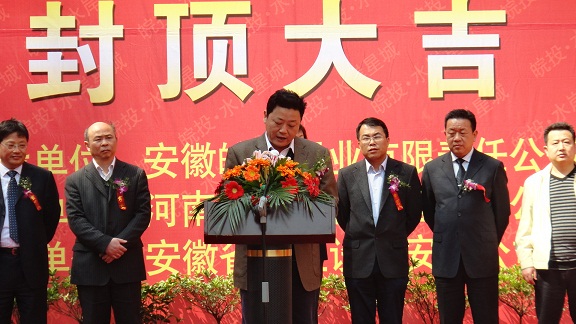 皖投置業(yè)總經(jīng)理耿文女士在慶典上發(fā)表講話,對(duì)我公司全體人員的工作給予了充分的肯定,并表示皖投水岸星城一期三標(biāo)段工程的順利封頂,奠定了皖投置業(yè)與省安裝公司成為長(zhǎng)期戰(zhàn)略合作伙伴的基礎(chǔ)。